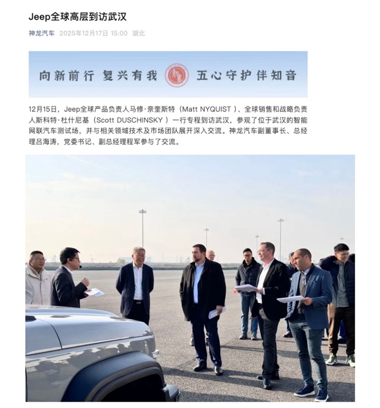 随后,关于Stellantis与东风集团联合开发Jeep品牌硬派越野新车的传闻不胫而走。合作若成真,将标志着中国汽车企业首次从“技术引进方”转变为“技术输出方”。